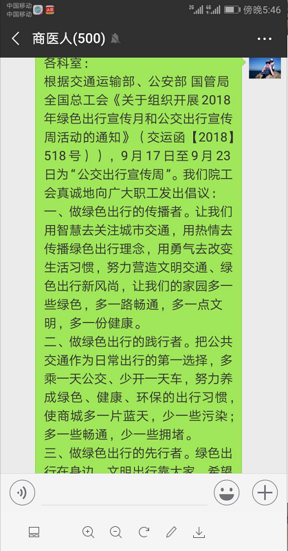 按照交通运输部、公安厅、国管局、全国总工会《关于组织开展2018年绿色出行宣传月和公交出行宣传周活动的通知》(交运函【2018】518号)的部署要求,九月以来,县医院工会积极组织开展了“绿色出行从身边做起”的主题实践活动。
