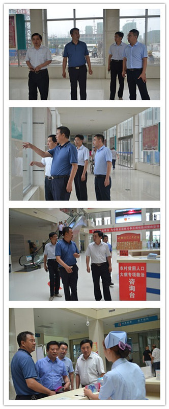 在贫困患者咨询服务处,阮县长还查看了农村贫困人口大病专项救治等健康扶贫相关政策宣传资料,现场提问咨询台医务人员国家健康扶贫政策相关知识。阮县长对我院积极实施贫困人口“先诊疗后付费”一站式服务,以及贫困人口在住院医疗费用报销、慢性病门诊费用报销等方面全面落实上级制定的各项国家惠民政策所取得的成绩给予了充分肯定和高度评价。他指出,医疗卫生事业是民生之本、和谐之基、发展之源,是强国安民的光荣事业,是为实现“中国梦”奠定基础的伟大事业。作为落实卫生工作的载体、直接服务群众的“窗口”,医院当前面临着更多的机遇和挑战,赋予了更新的动力和内涵。今年是全面贯彻党的十九大精神的开局之年,也是决胜全面建成小康社会、打赢精准脱贫攻坚战的关键之年,商城县人民医院作为全县健康扶贫的排头兵,要从基本医疗救治、重大疾病救助和城乡居民(特别是贫困群众)的健康促进与教育两方面发力,并结合自身优势,不断深化内涵建设,强化责任担当,进一步做好健康扶贫工作,让“因病致贫”、“因病返贫”的贫困人口早日走上致富路,让人民群众切实感受到党和国家的关怀和温暖,为建设美丽乡村·文明城镇·幸福商城做出新的更大贡献!