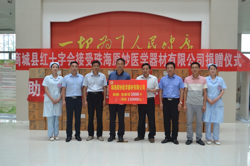 仪式现场,珠海原妙医学器材有限公司捐赠的集液袋5000个,价值达14万元,此次活动是继去年原妙医学捐赠吸痰器50个、集液袋5000个,价值达23万元后的再次爱心赞助。副县长阮礼银感谢和赞扬原妙医学热心扶贫事业,一直秉承红十字会“人道、博爱、奉献”的高尚精神,不断为社会主义和谐社会的中国梦添柴加薪,为新时代中国特色社会主义发展道路添砖加瓦,不断以优良的产品和优质的服务回馈人民,服务群众。