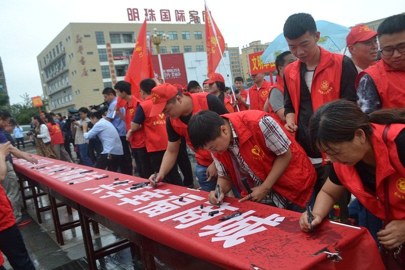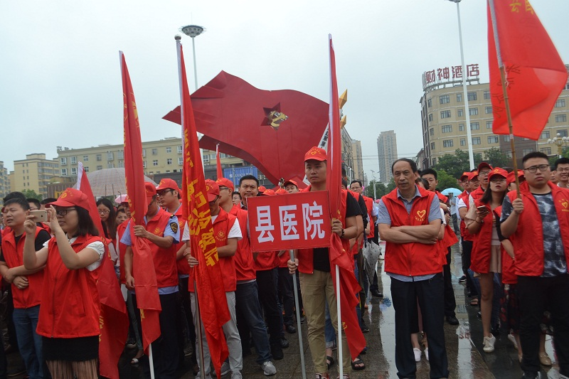 为贯彻落实全县城市环境综合整治工作动员会精神,6月19日上午,我县在文体广场举行了“商城县城市环境综合整治工作誓师大会暨志愿服务活动启动仪式”。商城县人民医院志愿者在副院长曾凡军的带领下参加了启动仪式。