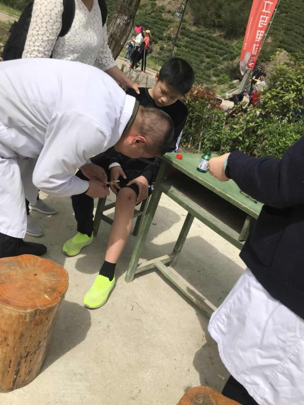 在开幕式现场,歌舞表演精彩纷呈。《走向新时代的西河》、《健身秧歌》、《醉坛》等文艺节目让人们在曼妙的歌舞表演中感知运动的快乐;在徒步过程中,小桥流水,崇山峻林,红色的杜鹃花点缀山林,花海人潮相映成趣,美不胜收,而这一切似乎都没有吸引到我们的医务人员,时时牵动他们的心弦唯有徒步者的健康与安危。他们给高烧的孩子量体温、喂退烧药,给皮肤过敏的孩子擦药膏,给徙步者处理伤口,给骨折患者及时送往急救中心......在千万张喜悦的笑脸背后,是我们医务人员无怨无悔的付出。